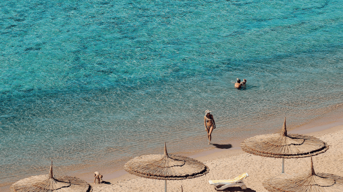 Spiaggia privata di sabbia. Il fondale corallino digradante permette di entrare agevolmente in mare e il pontile galleggiante consente un comodo accesso al tratto di mare aperto oltre la barriera corallina. Ombrelloni, lettini (fino ad esaurimento) e teli mare/piscina gratuiti. Servizio navetta gratuito dalle ore 09.00 alle ore 21.00.
